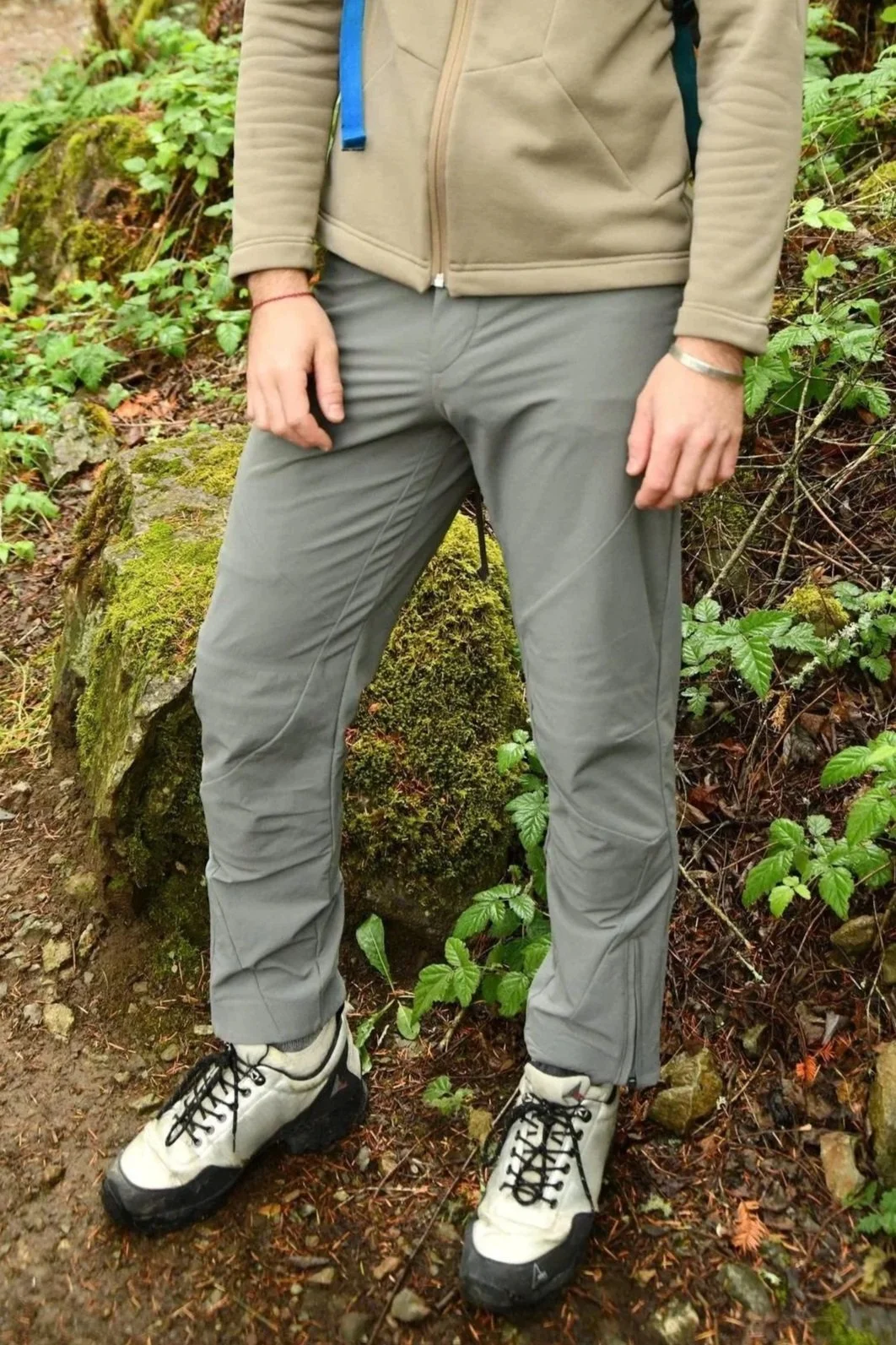 Adjustable Hem: Zippered gussets with welted tape coverage for compatibility across various outdoor footwear.