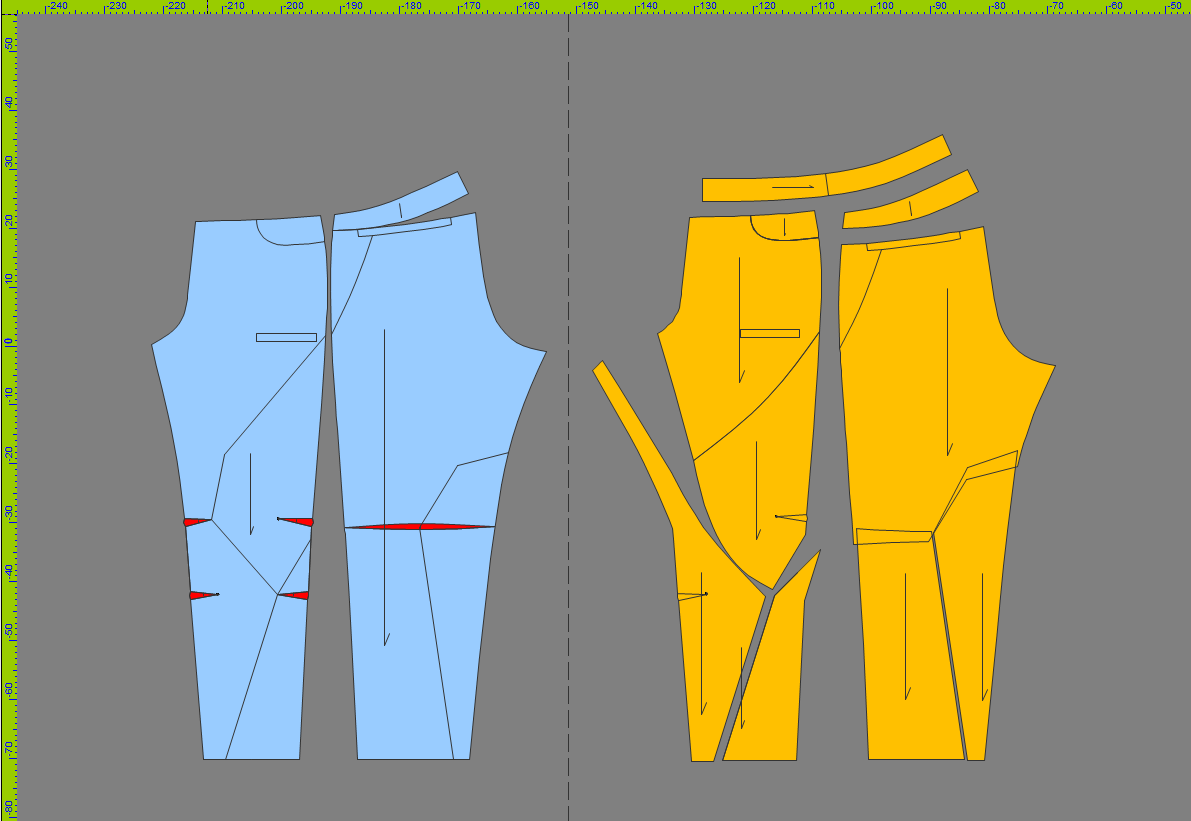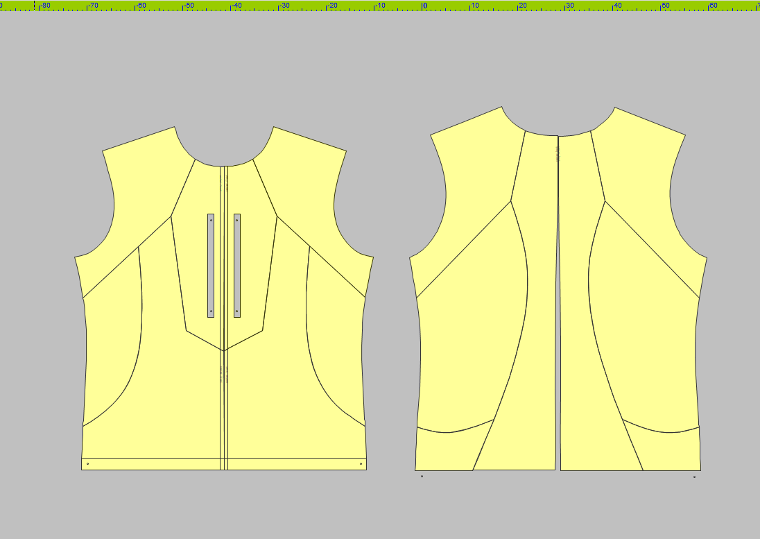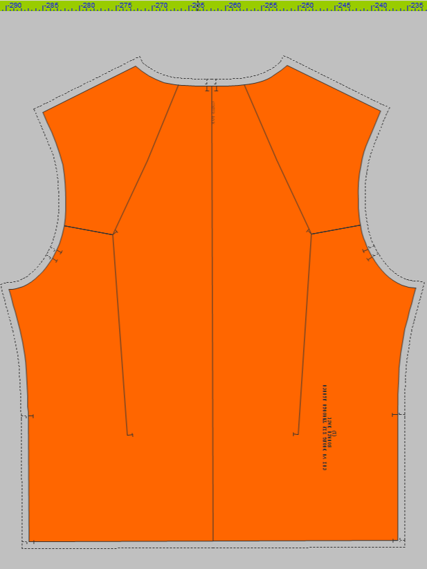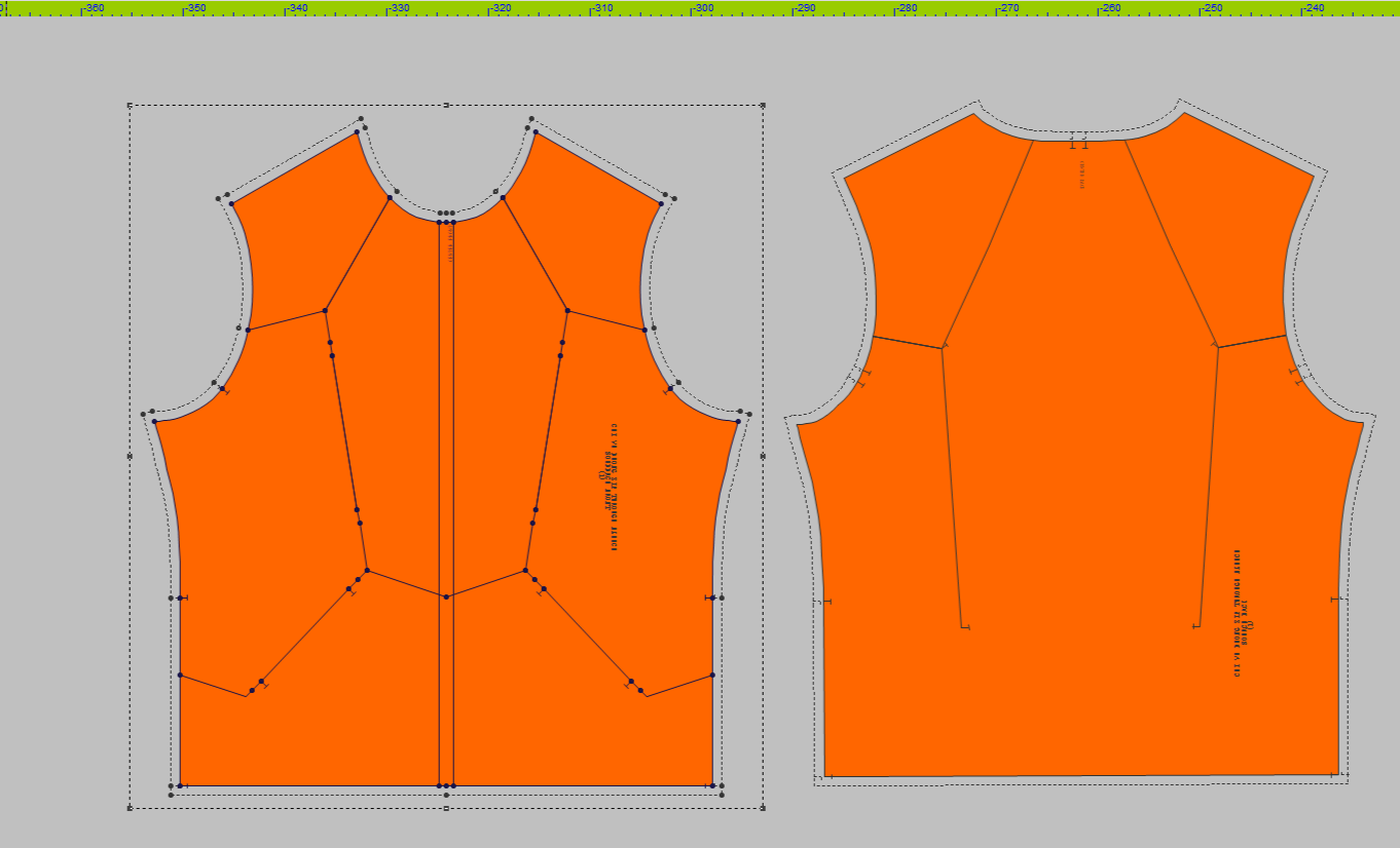 Master pattern (Front and Back) with drafted design lines in Optitex working space