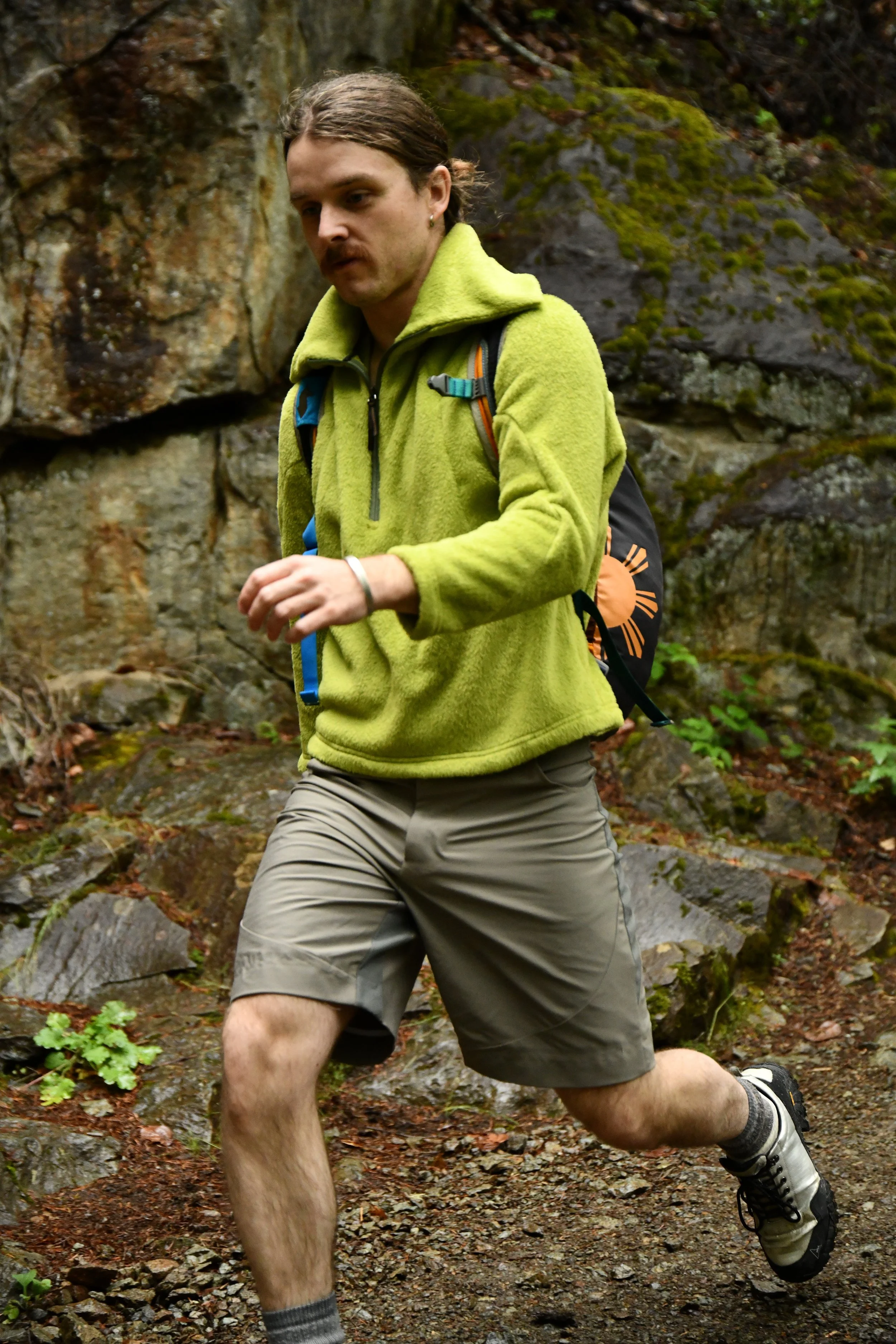 Tristan Sokol (model) in motion, wearing the Quarter Zip Pullover