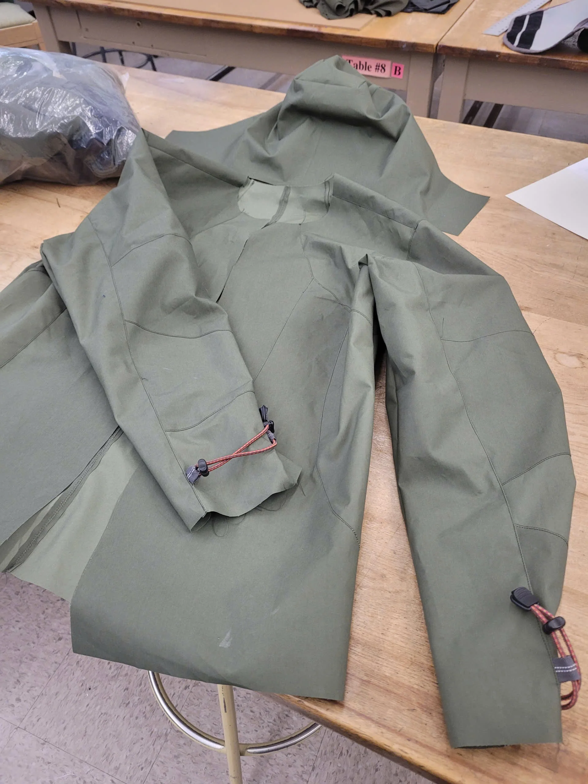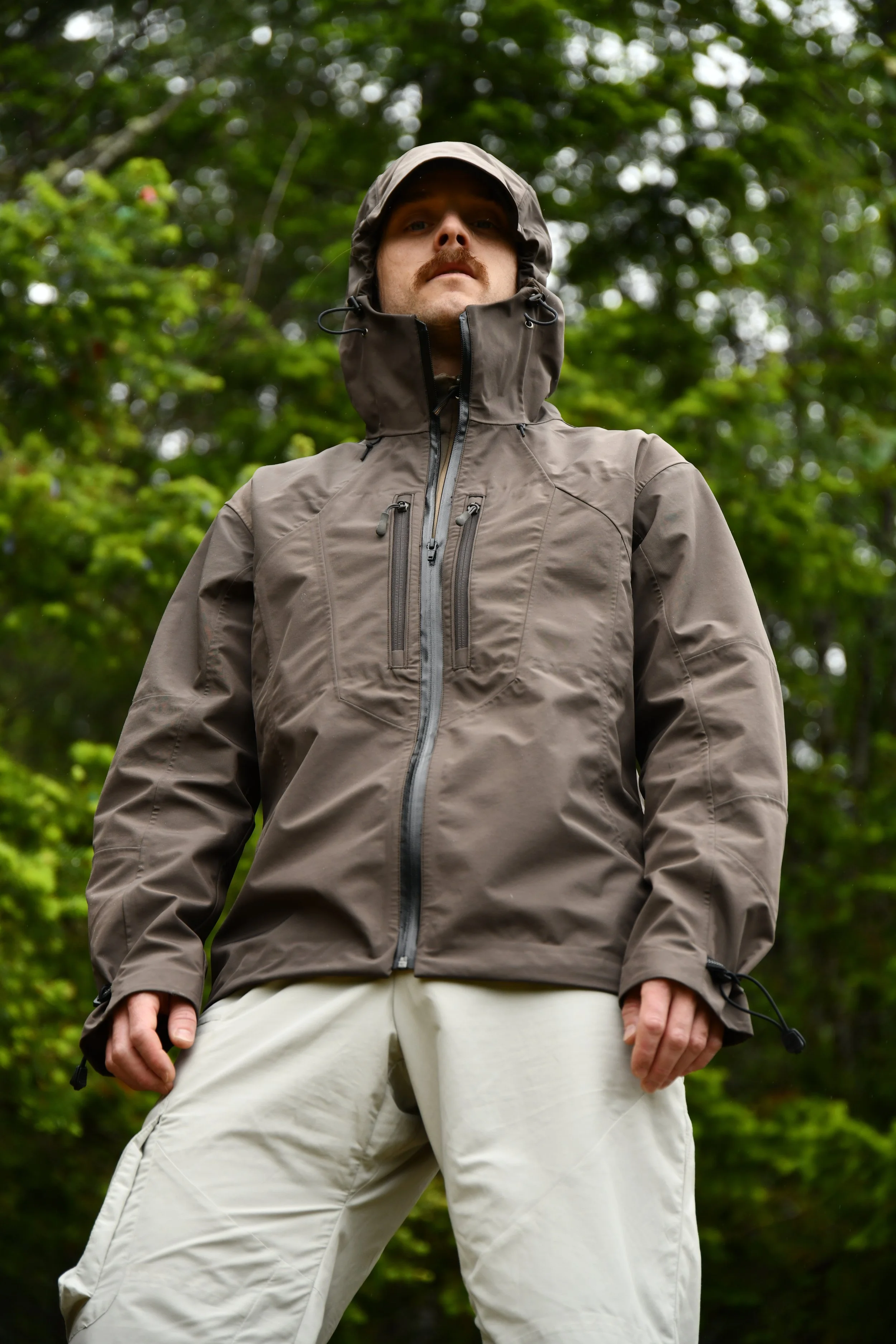 3D Ergonomic Hood: Modified from an Arc’teryx anatomical block; refined in Optitex for a snug, non-helmet-compatible fit with a double-laminated visor.