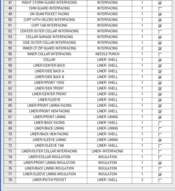 Pattern Development: Jacket block & 83 final pattern pieces (60 Shell / 23 Liner) developed in Optitex 2D.