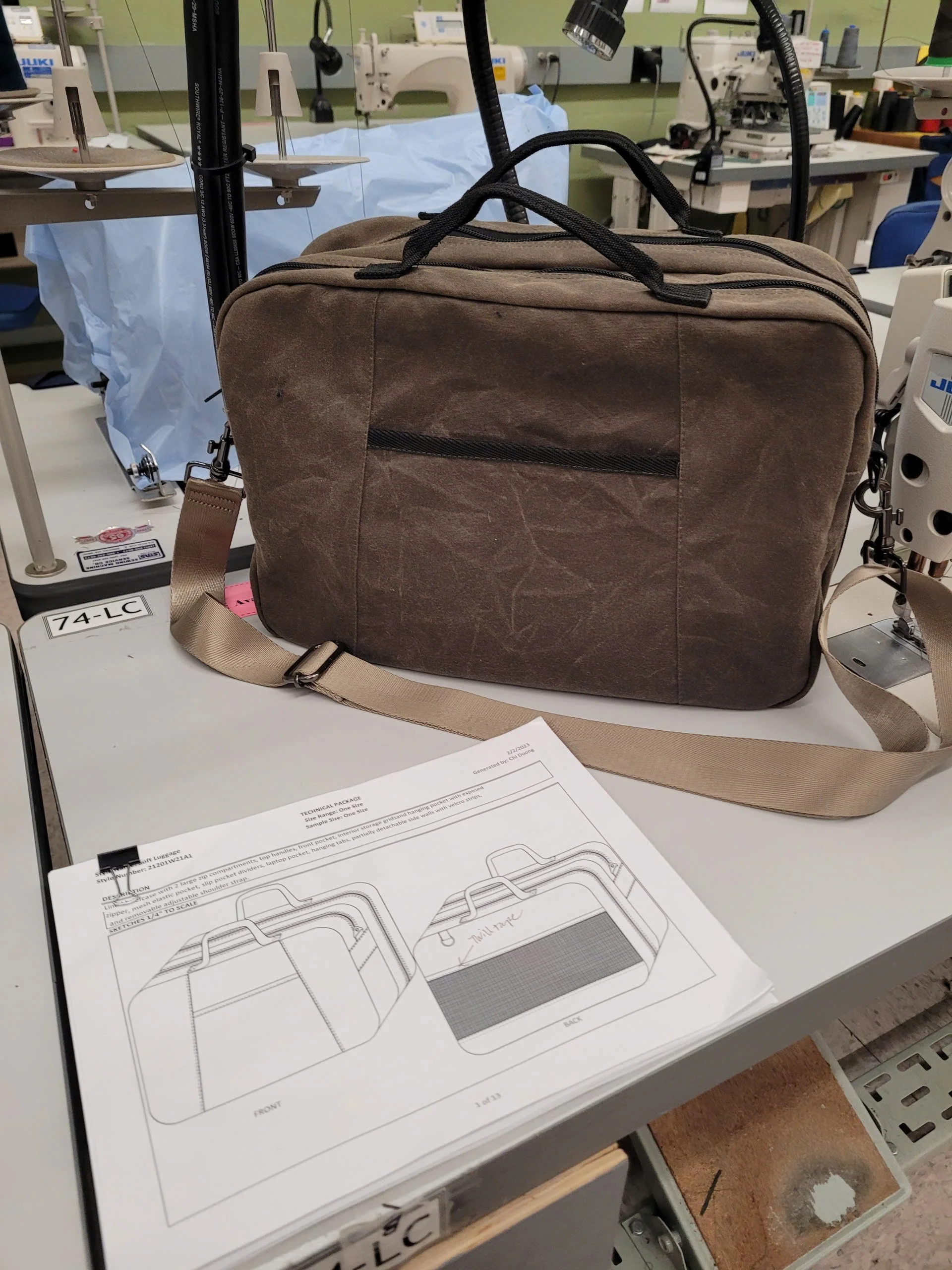 The project required a shift from flat-patterning to 3D box construction. I mapped the initial storage schematics in Adobe Illustrator before drafting the patterns in Optitex. I executed the full production cycle independently, following a 40-step industrial Sequence of Construction (SOC). This workflow was critical for calculating turn-of-cloth allowances and ensuring the 3D corners maintained the precision of the initial digital draft.